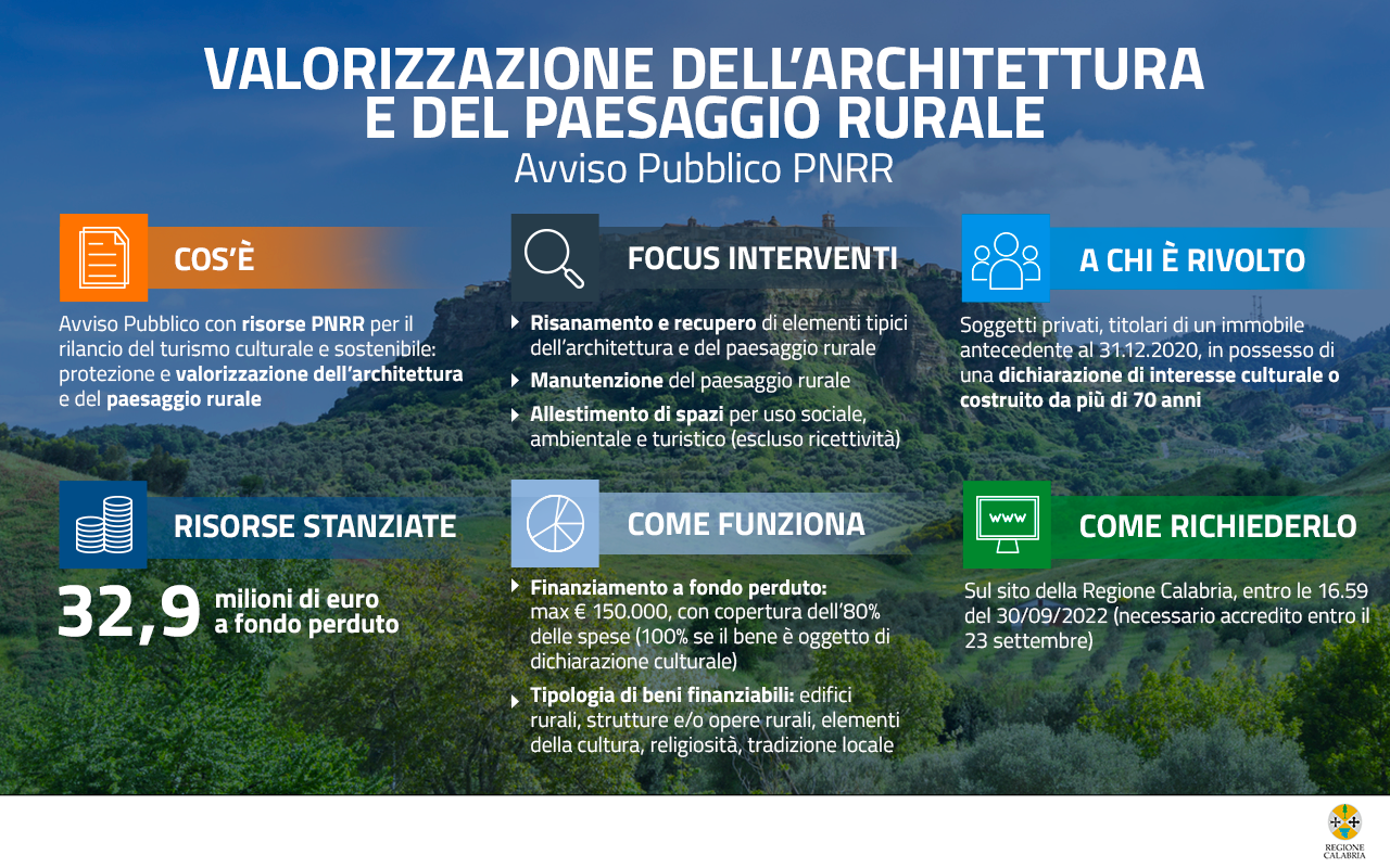 AVVISO PUBBLICO PER LA PRESENTAZIONE DI PROPOSTE DI INTERVENTO PER IL RESTAURO E LA VALORIZZAZIONE DEL PATRIMONIO ARCHITETTONICO E PAESAGGISTICO RURALE DA FINANZIARE NELL'AMBITO DEL PNRR
